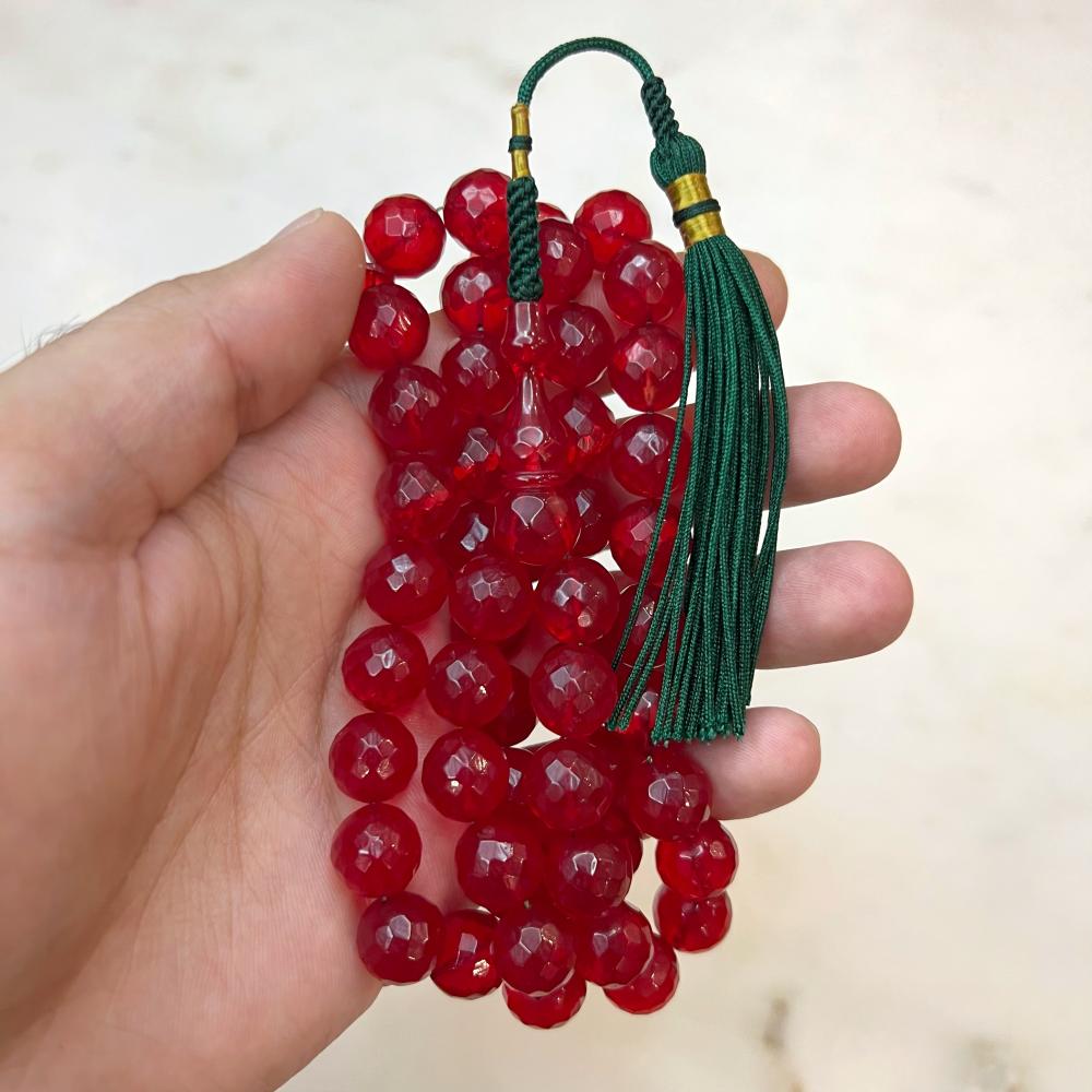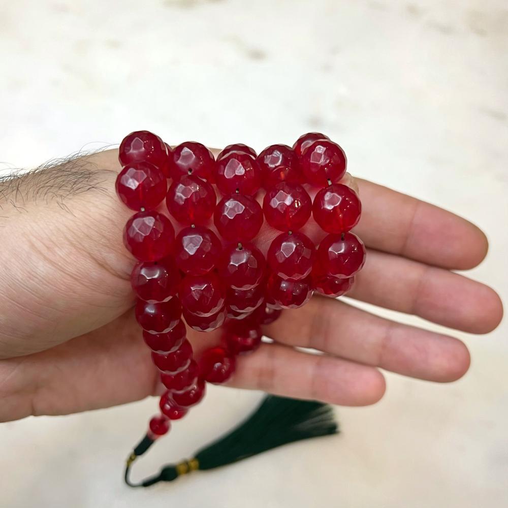 فاتوران لون احمر بشفافيه فاخر خرز مترش بطريقة احترافيه